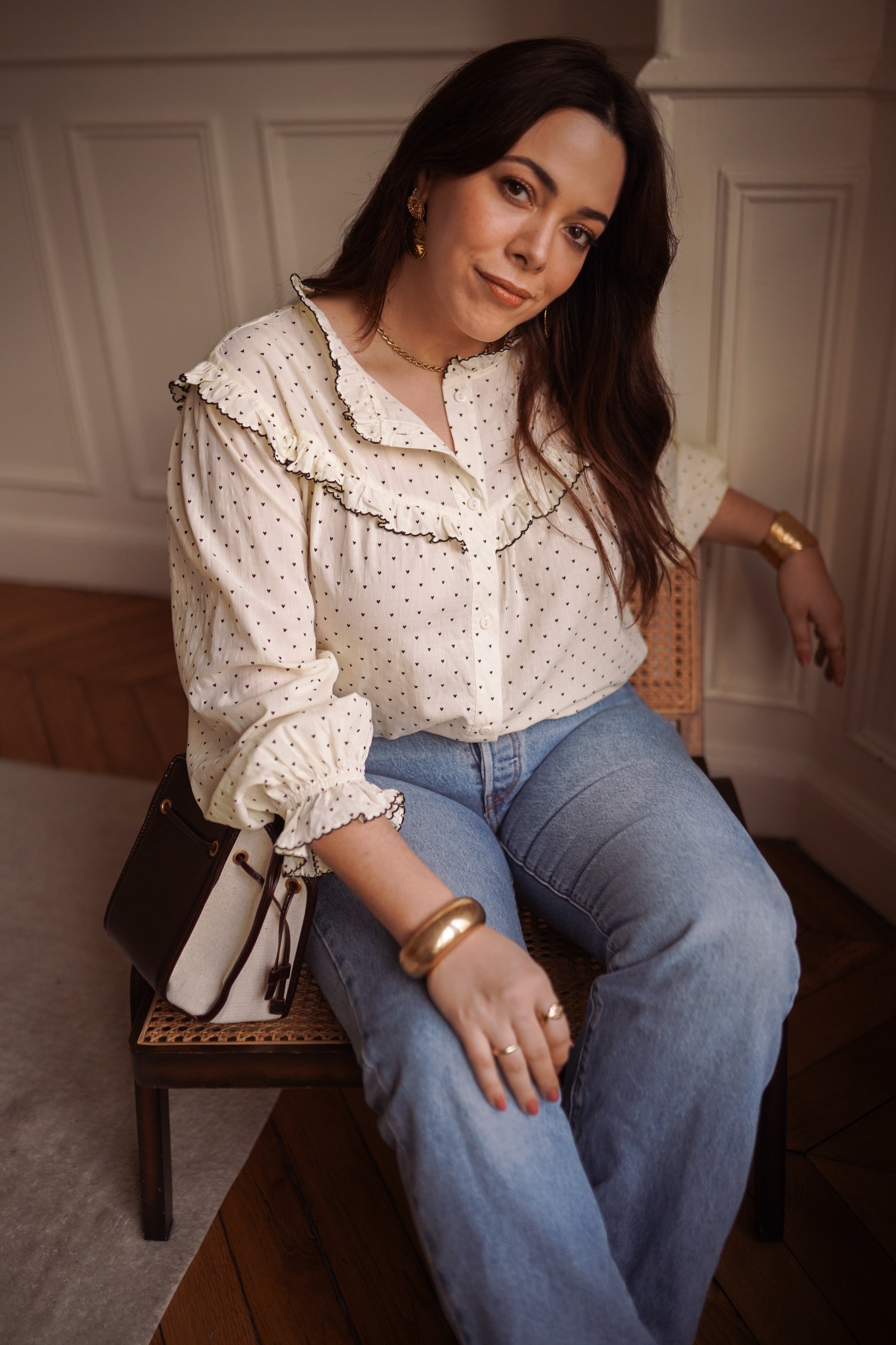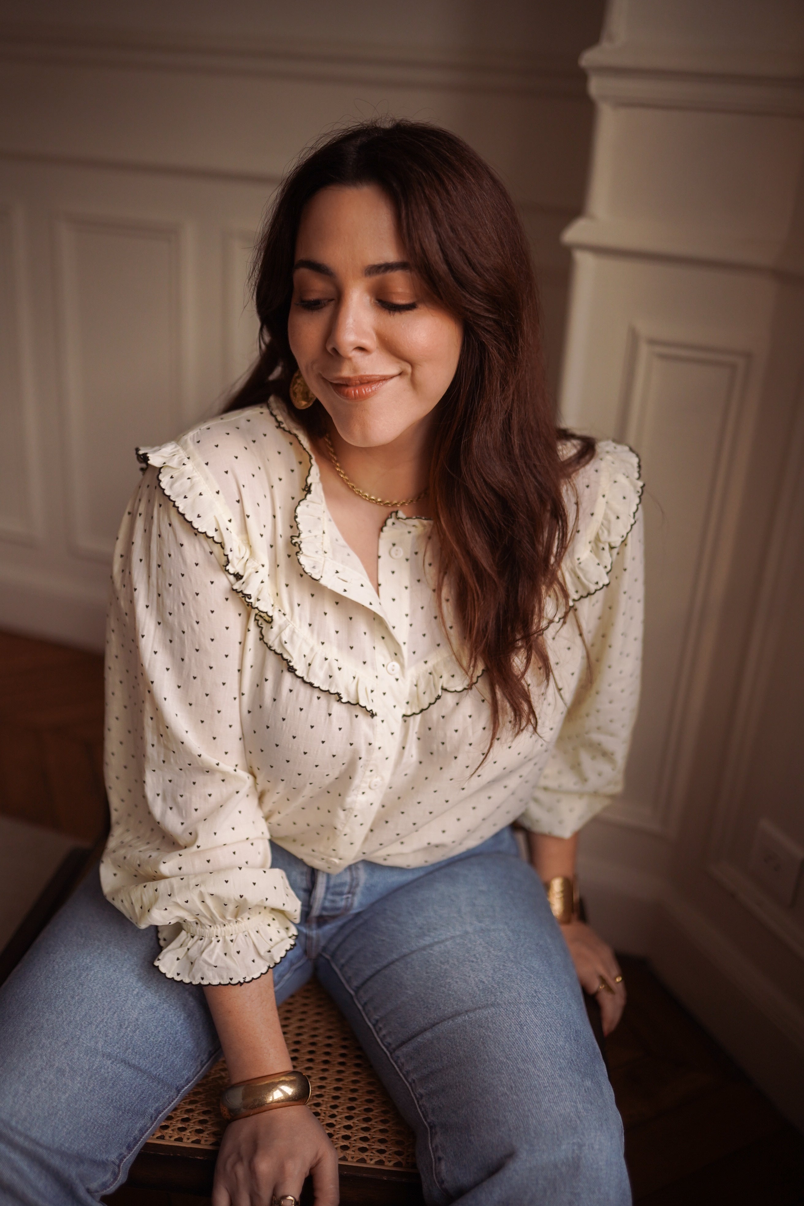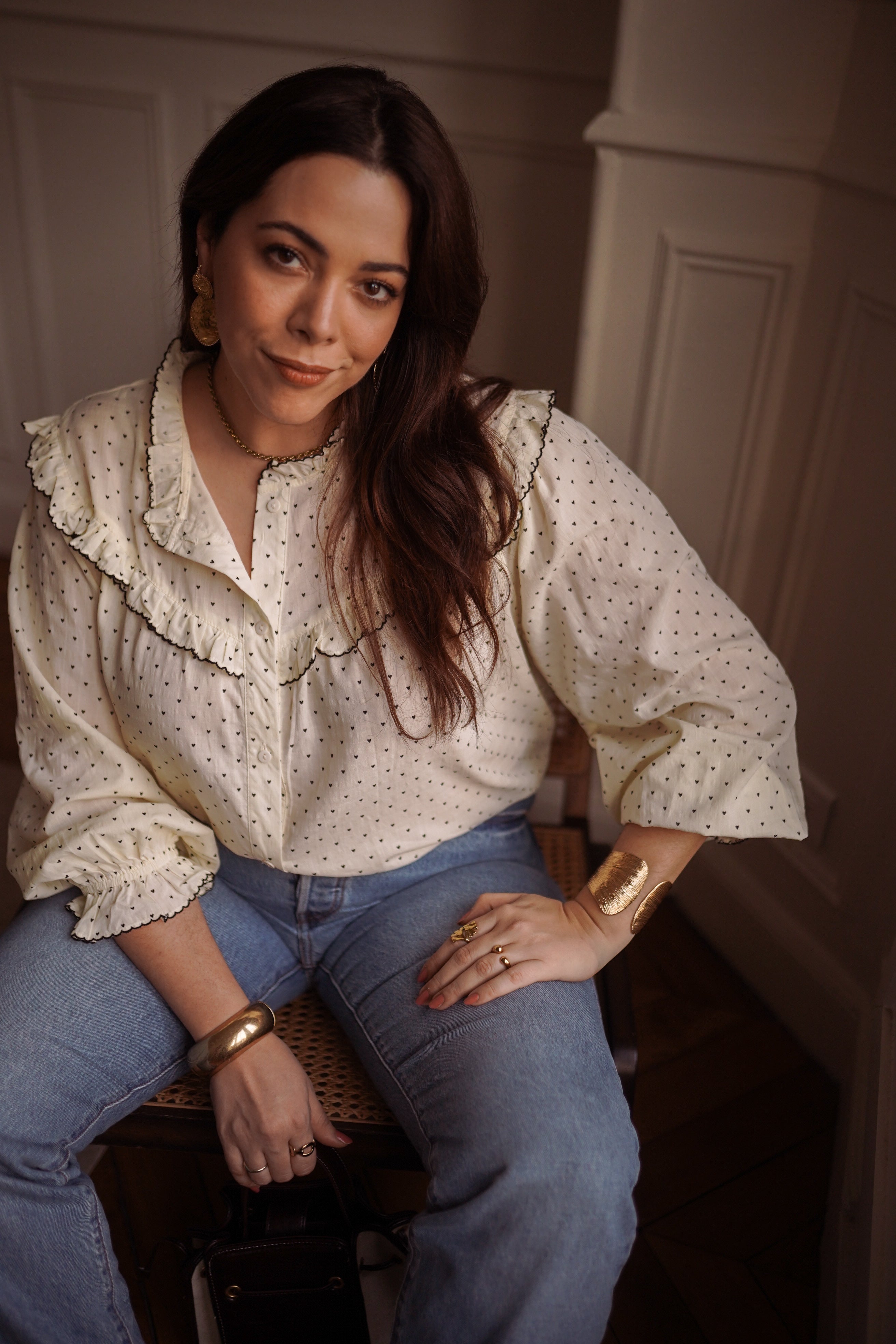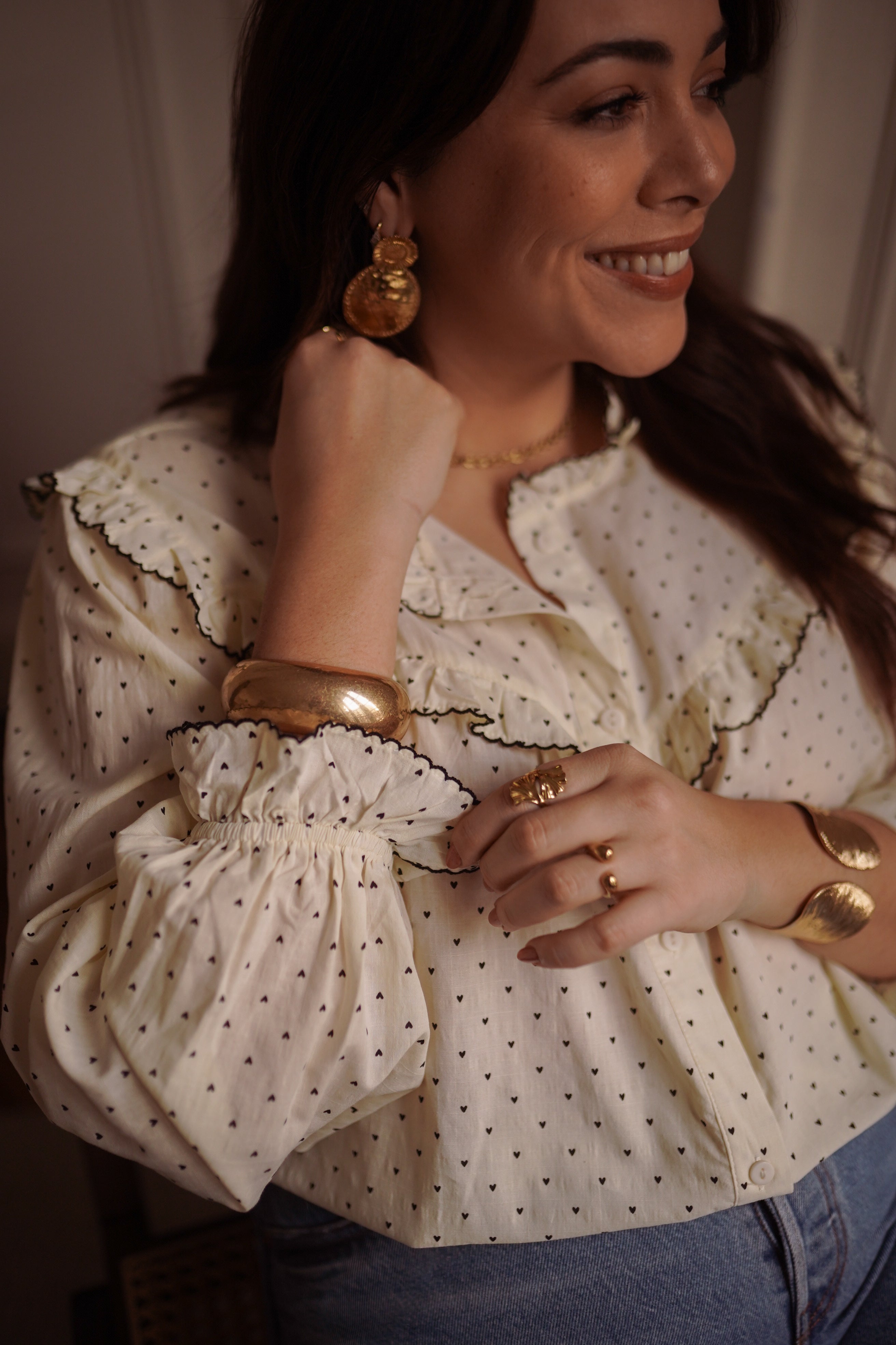 - Coloris écru ponctué de petits pois discrets