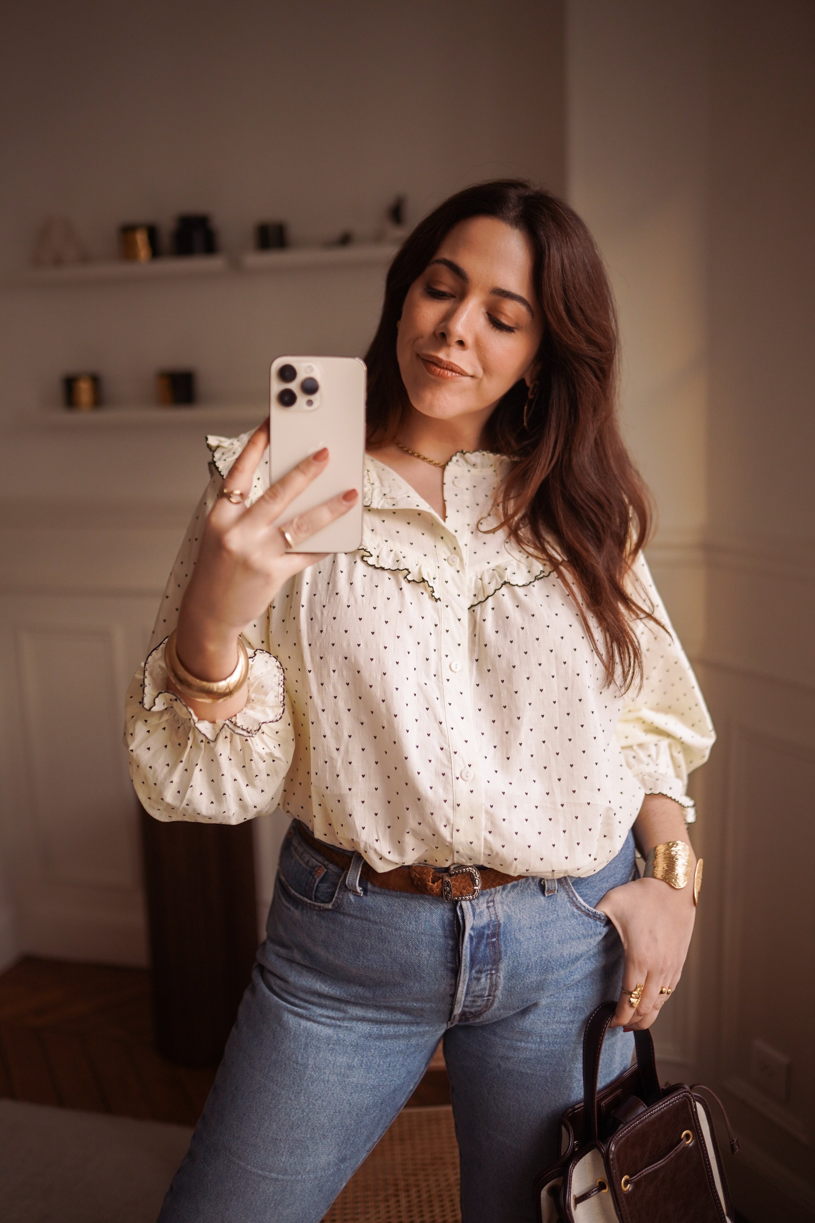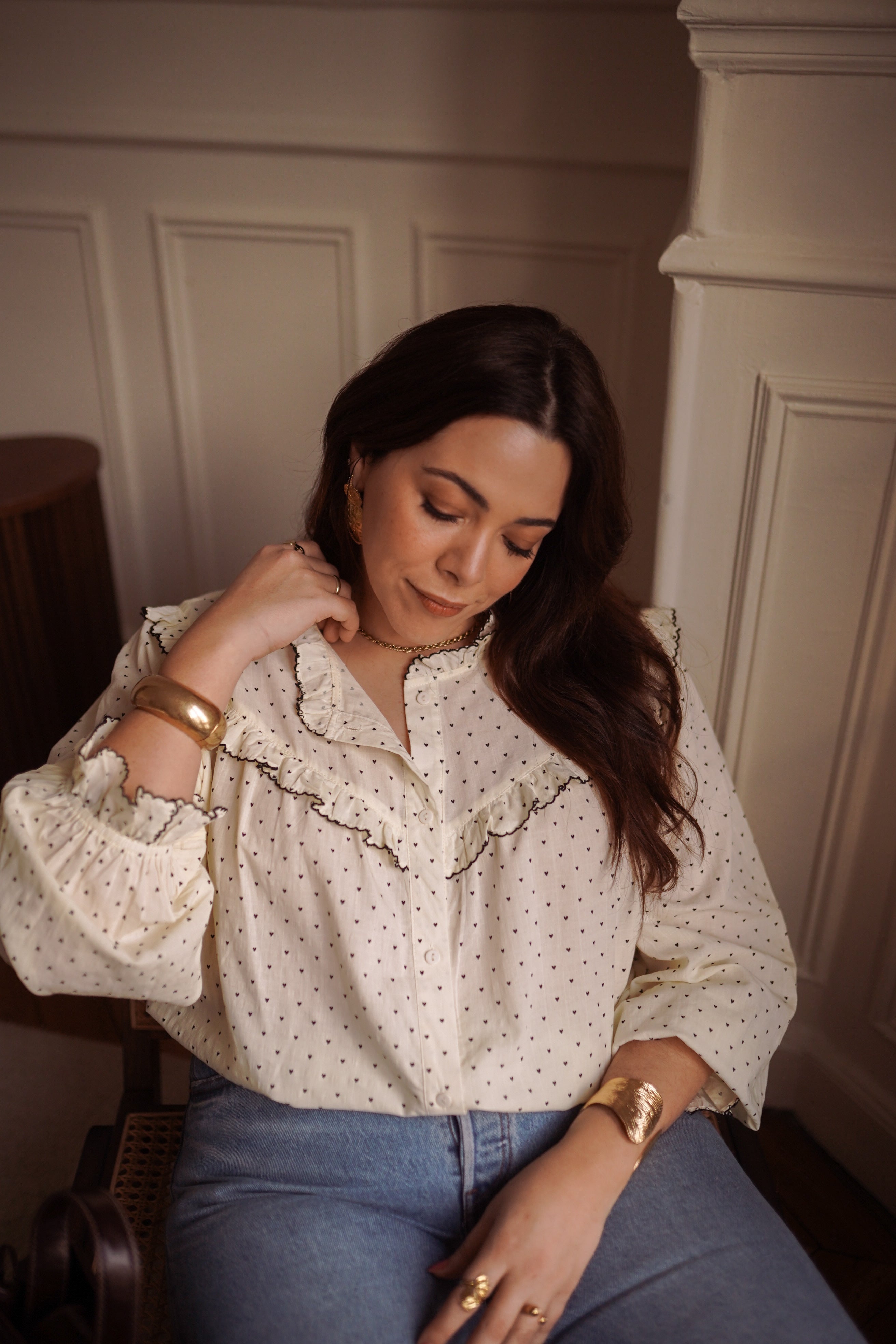 - Manches longues légèrement froncées