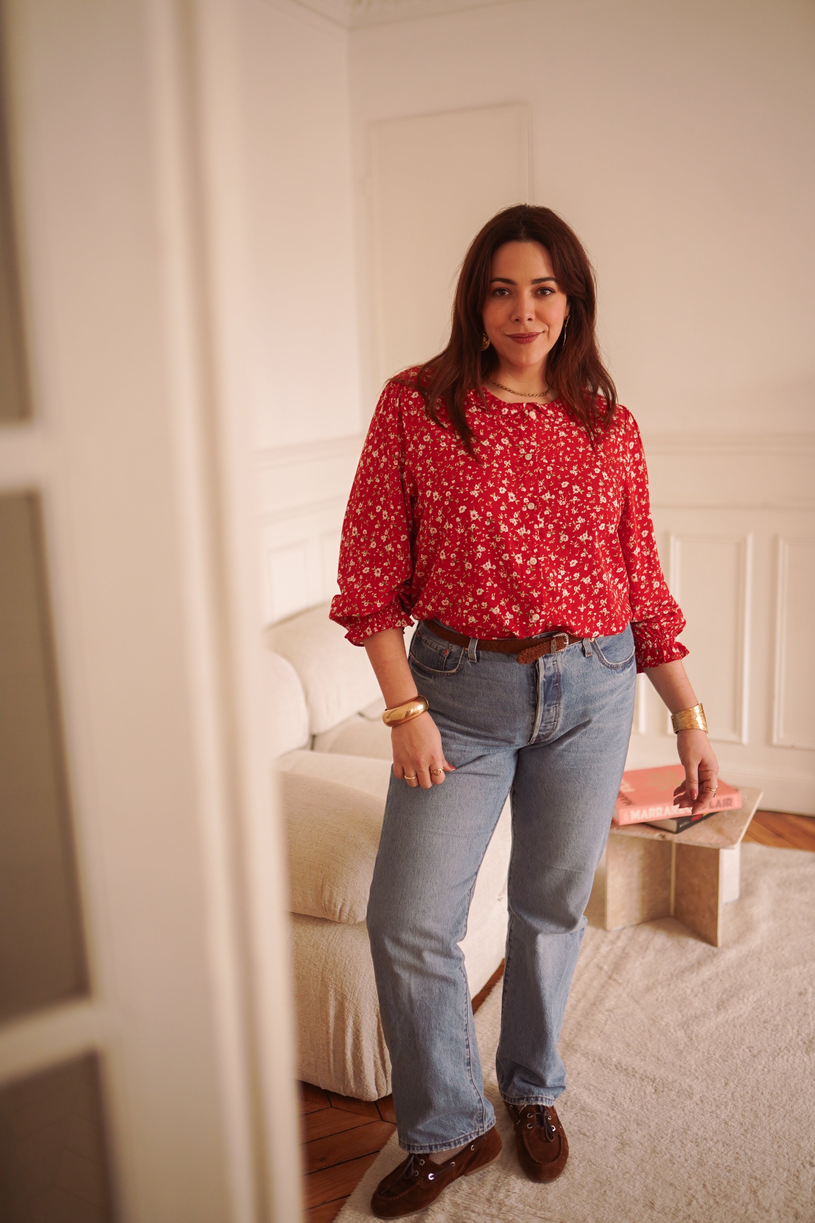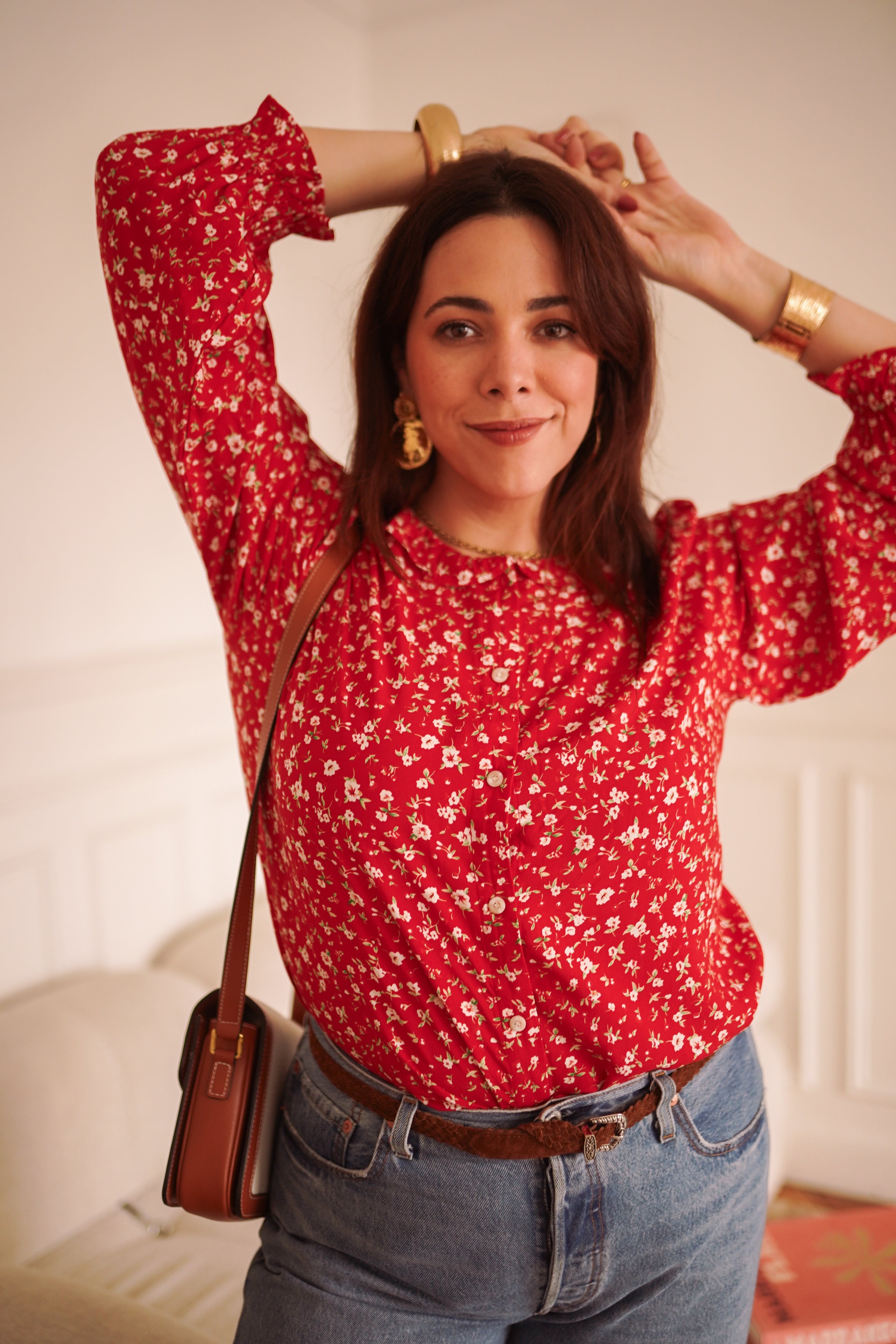 - Imprimé fleuri rouge intense, lumineux et affirmé