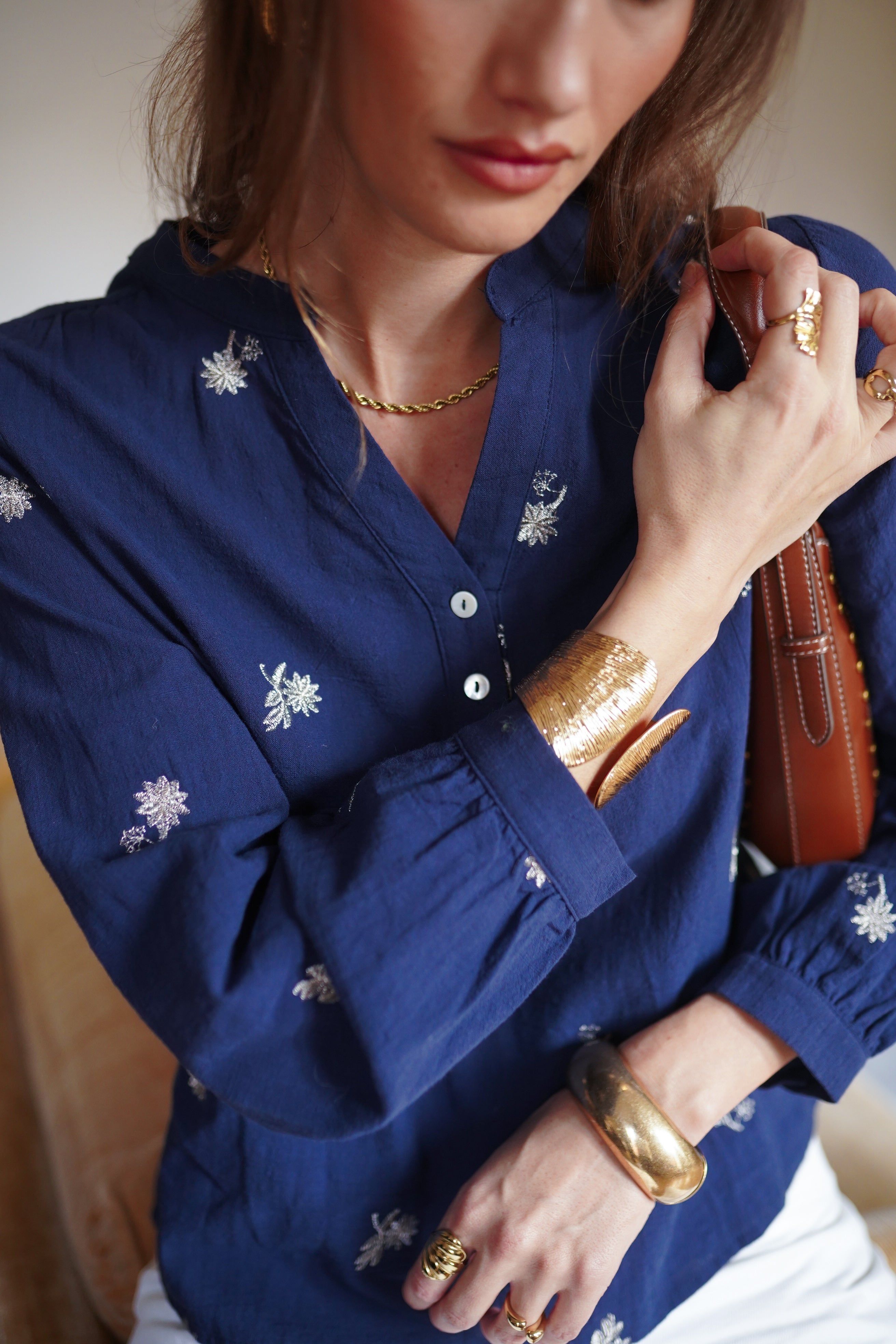 Blouse bleu profond à la matière légère et fluide