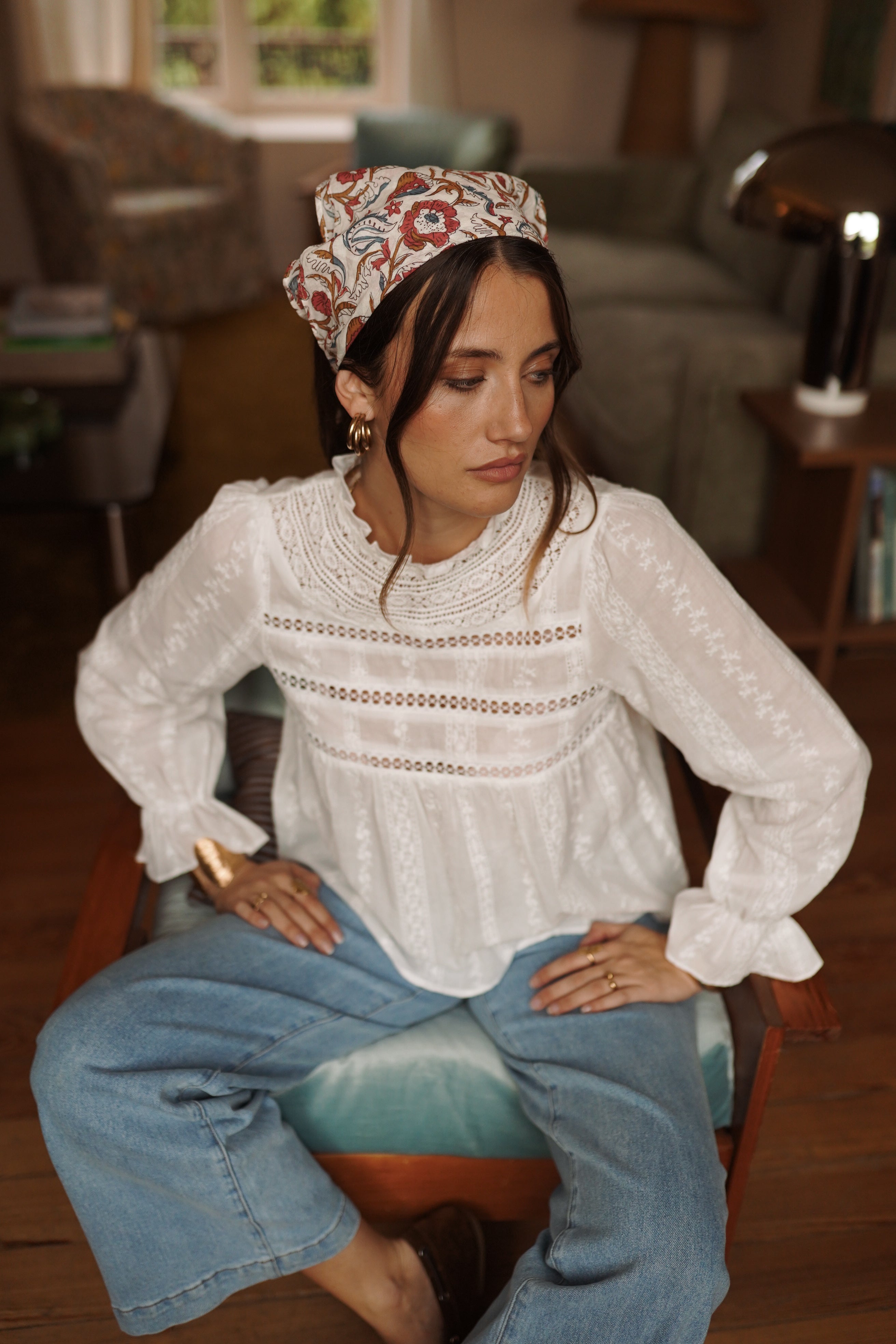 Zoéva mise sur une broderie délicate et une coupe fluide pour une allure douce et lumineuse. Le jeu de motifs ajourés, les manches légèrement bouffantes et la ligne évasée dessinent une silhouette légère, idéale pour la mi-saison.