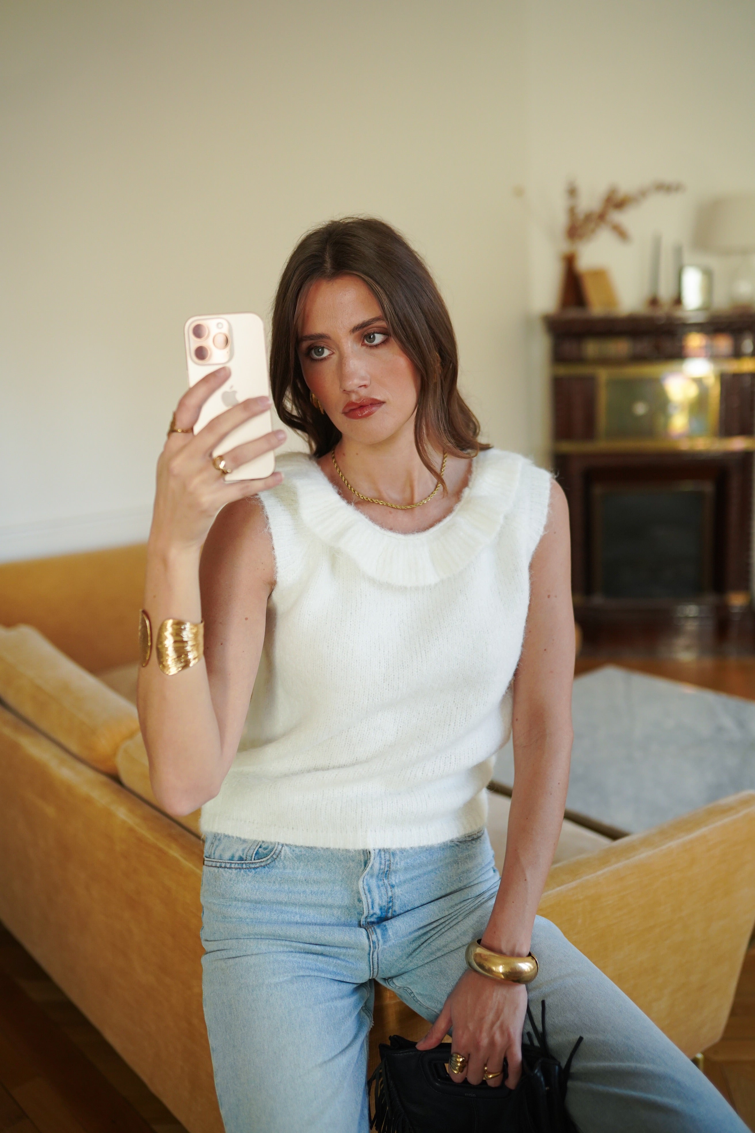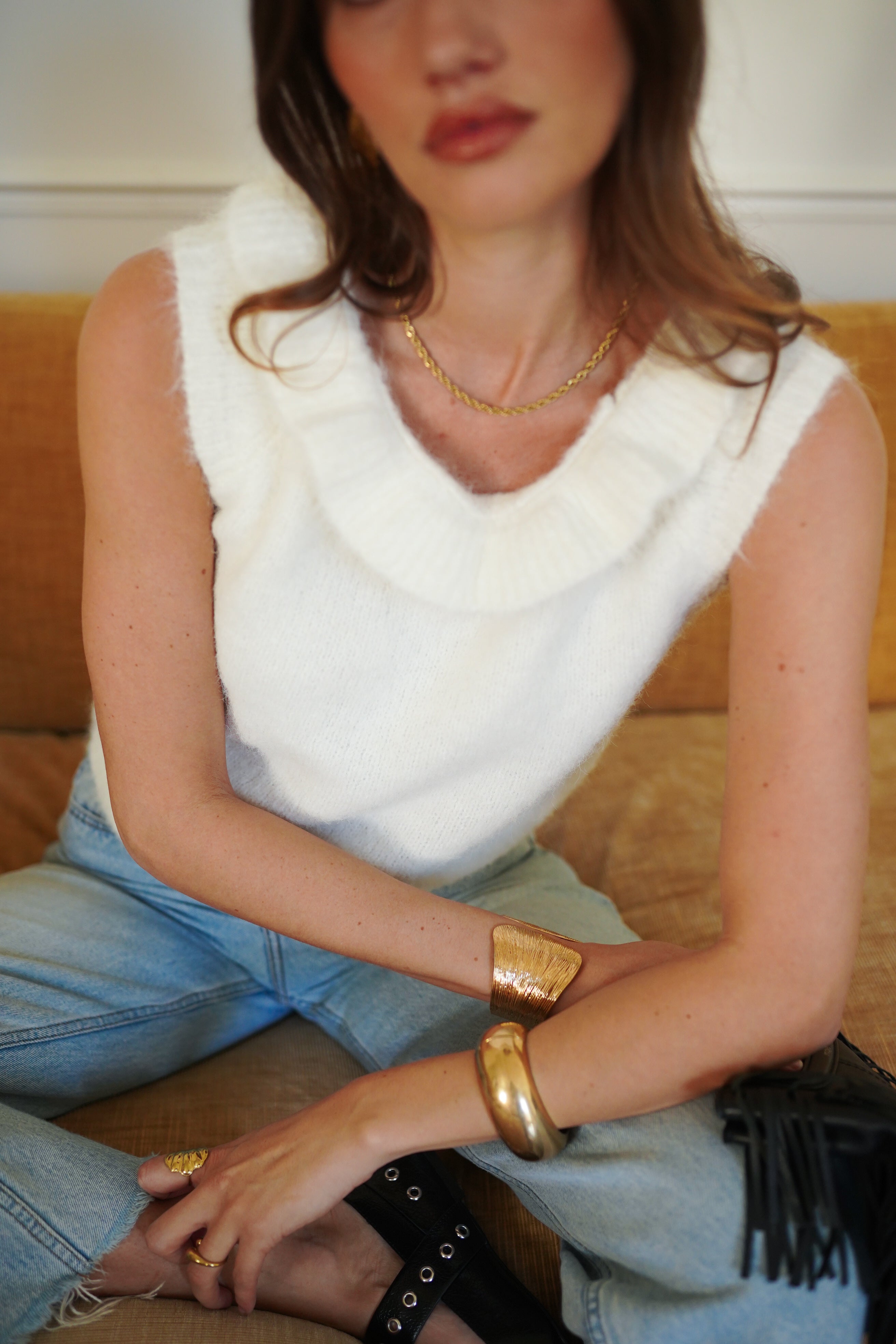 Haut en maille douce écru.