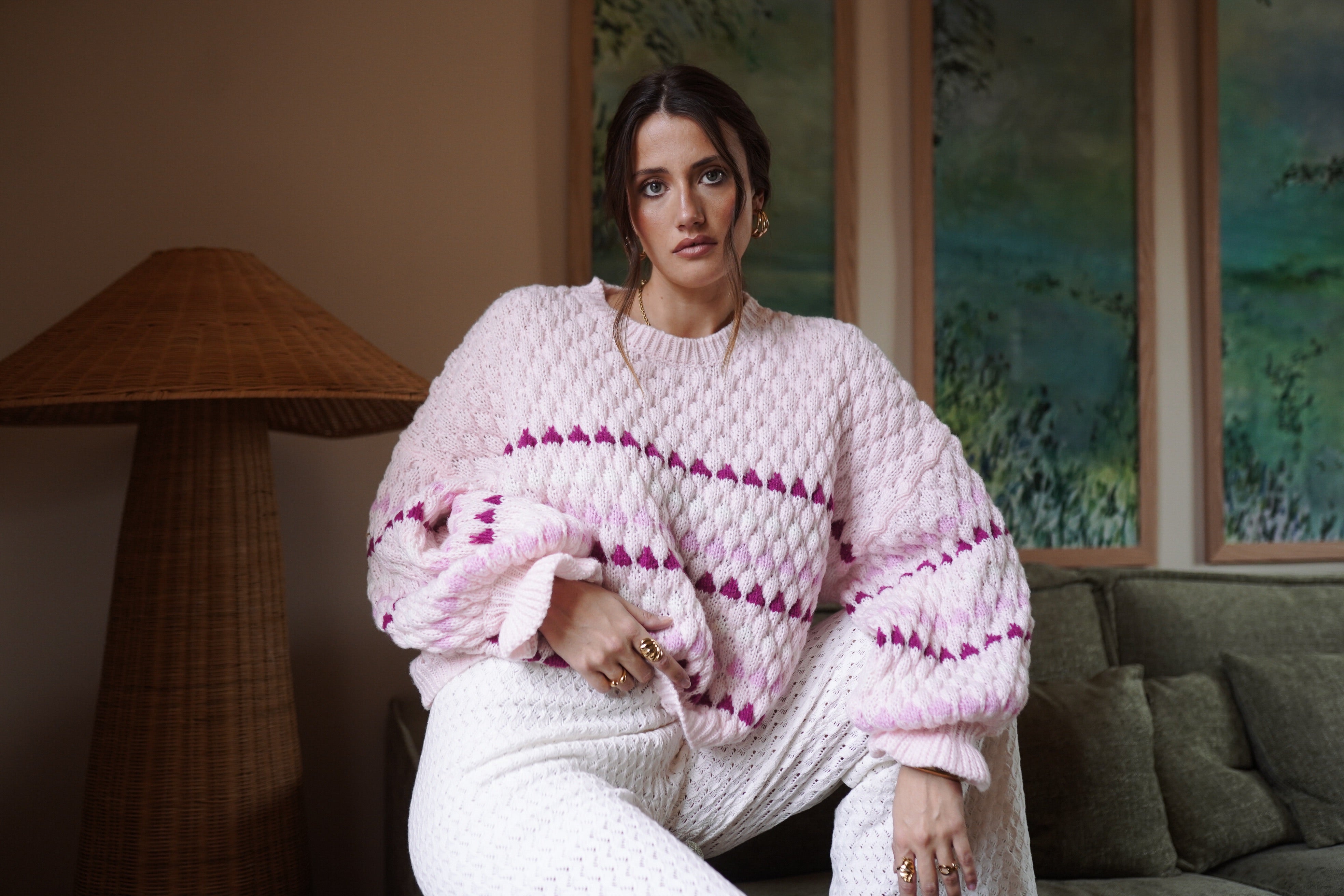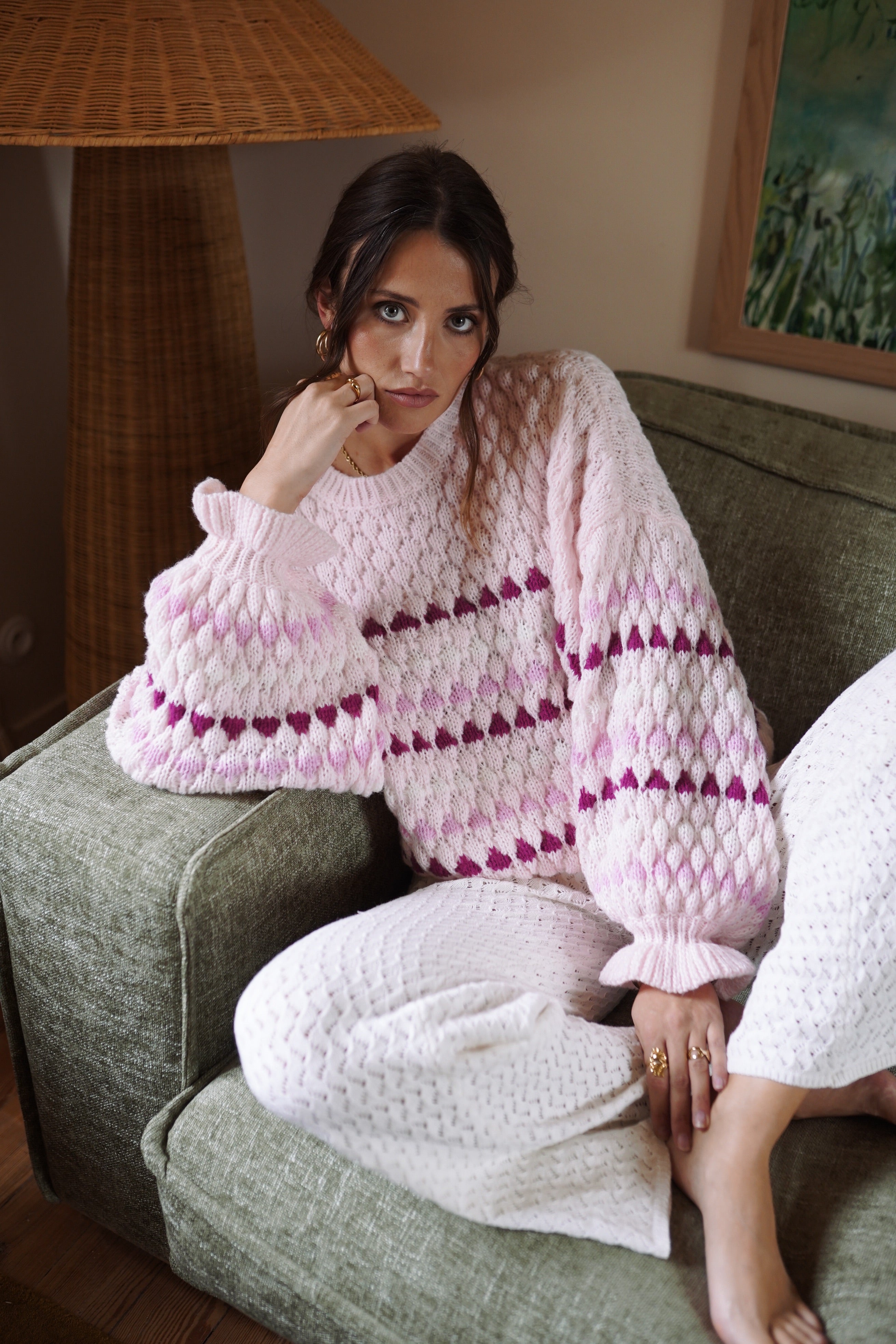 Amance apporte une touche douce et graphique au vestiaire. Sa maille texturée, rythmée de motifs contrastés, joue sur les volumes et la couleur pour créer une silhouette cosy mais affirmée.