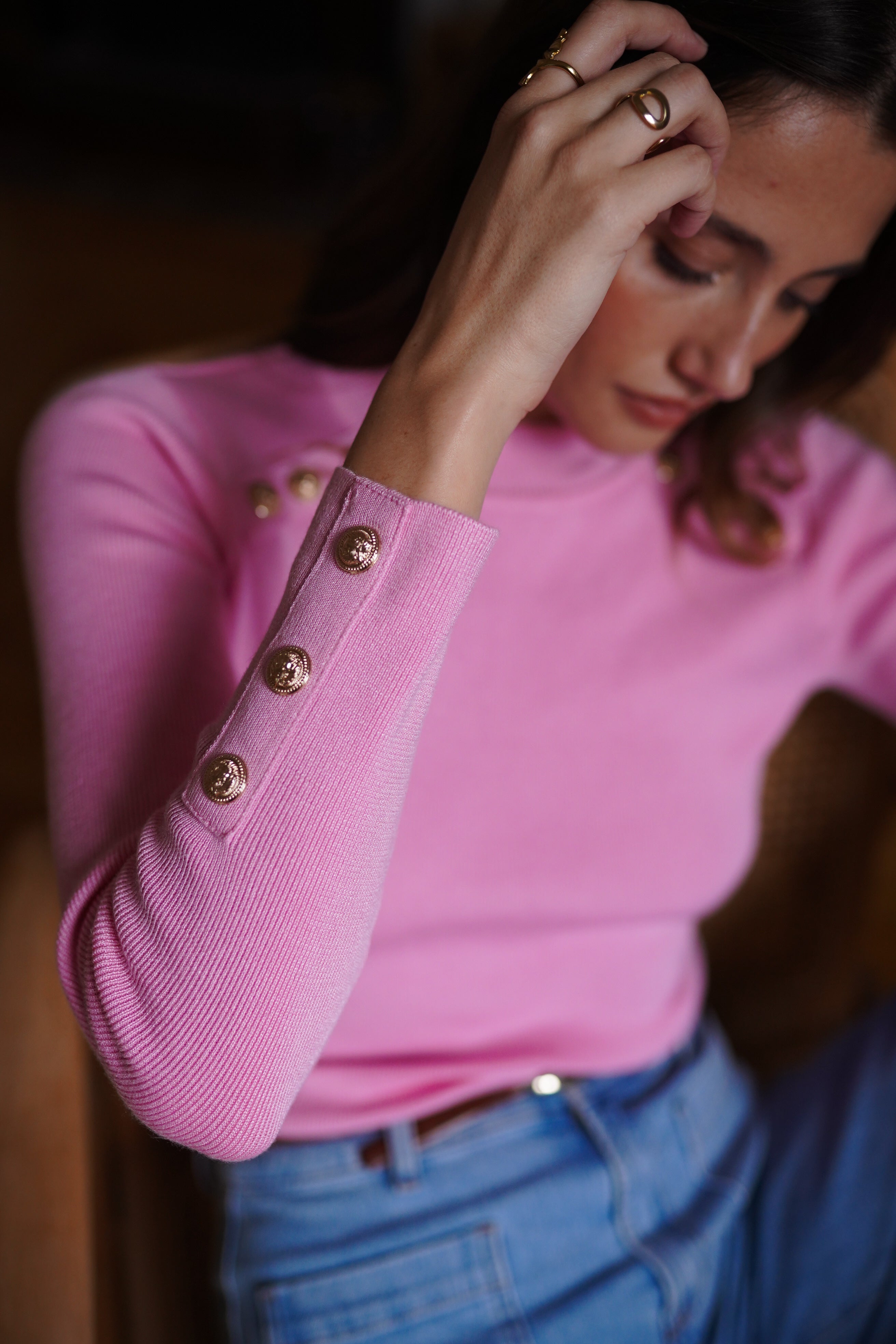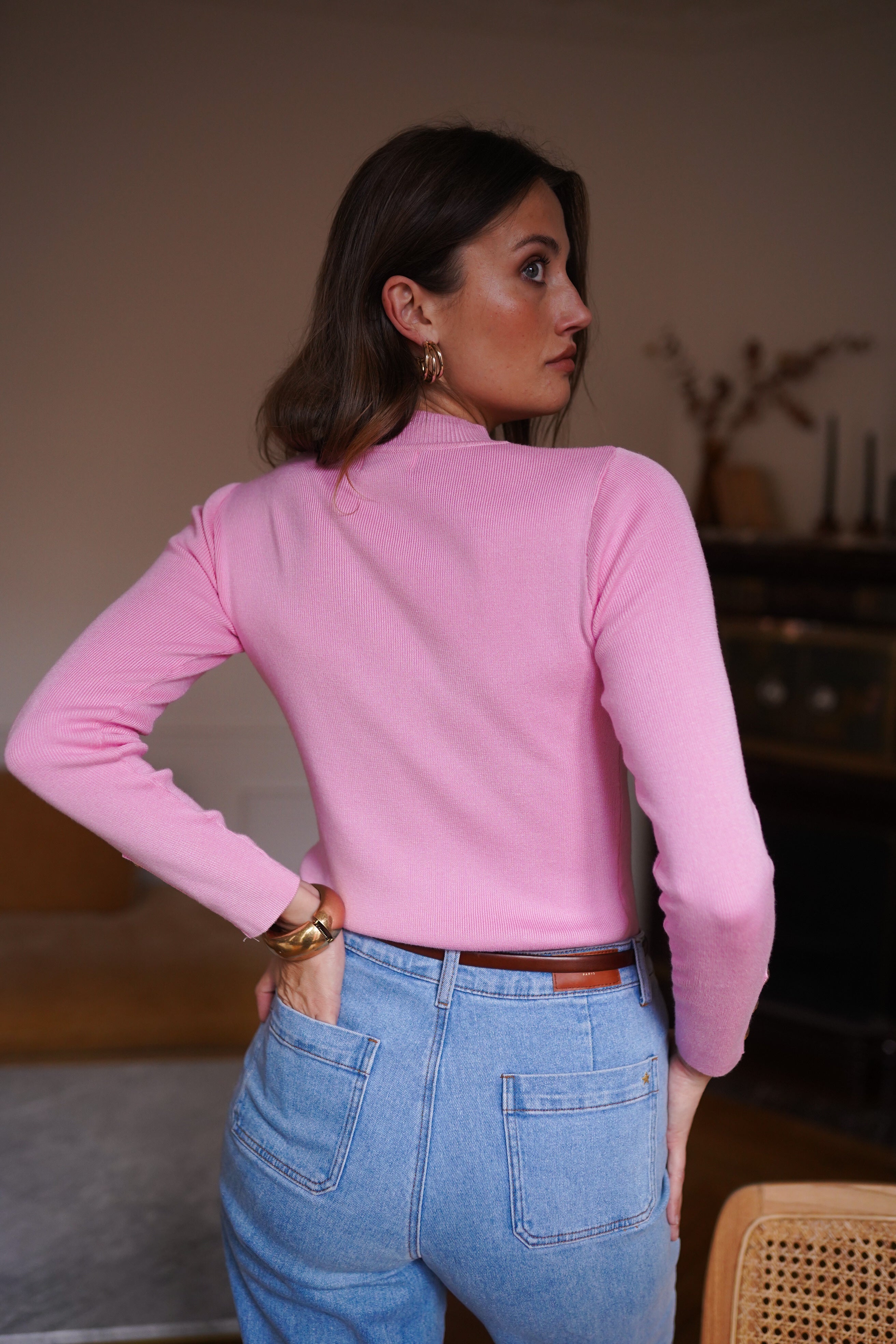 Maille fine et douce dans un rose lumineux.