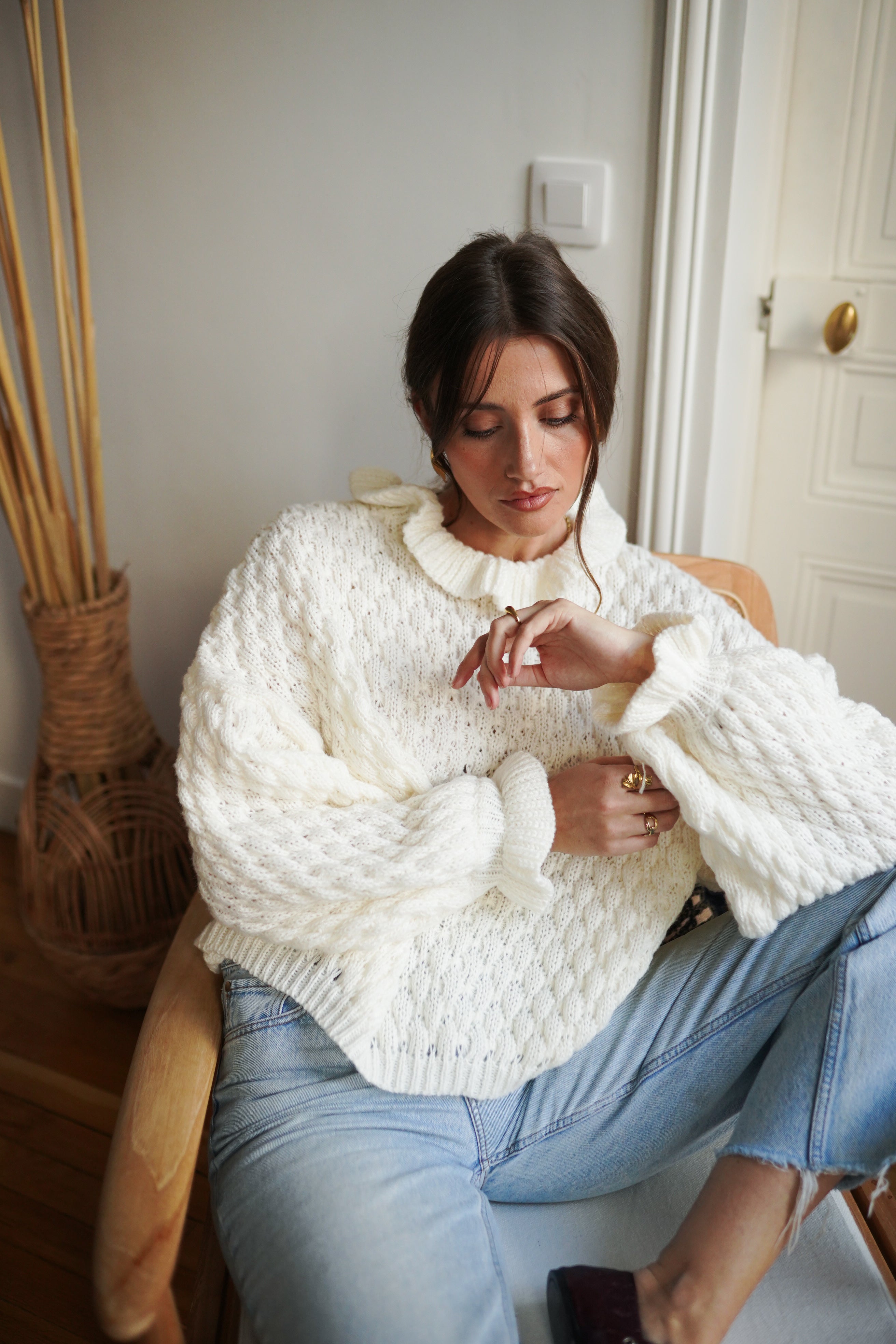Maille épaisse et texturée en écru.
