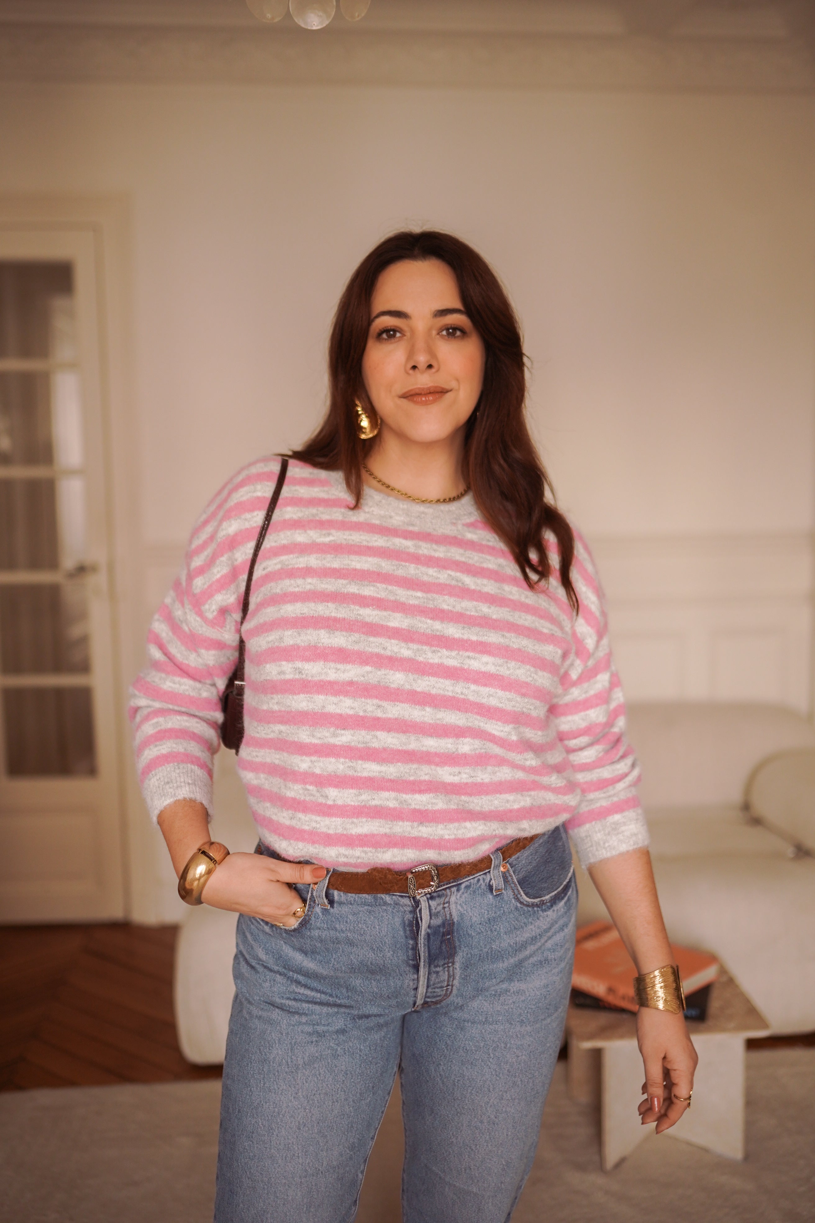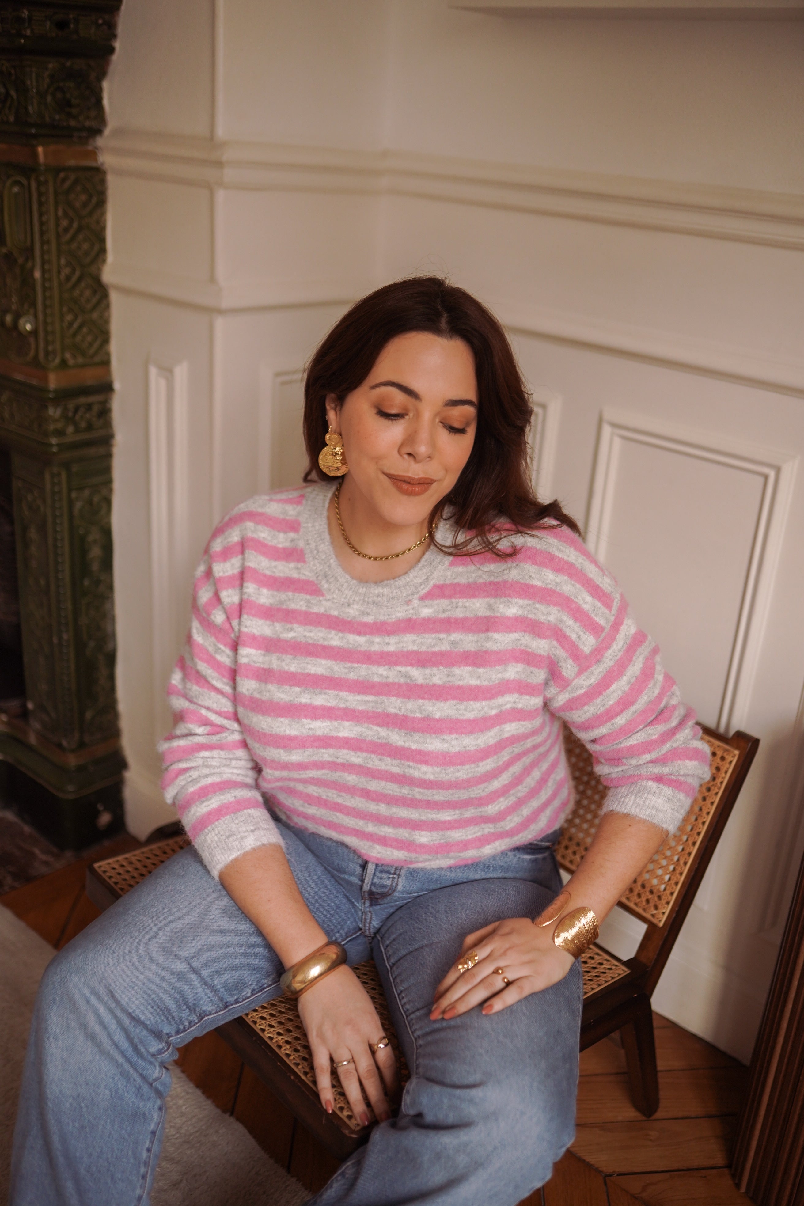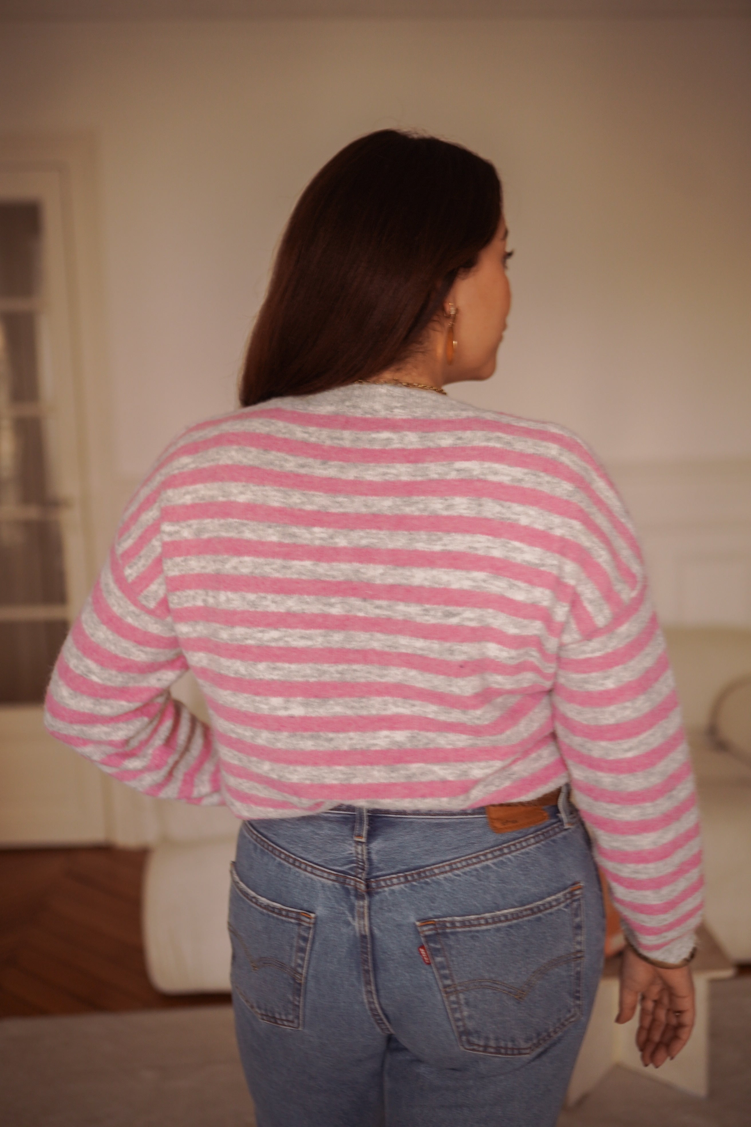 - Rayures rose et gris clair, fraîches et faciles à porter