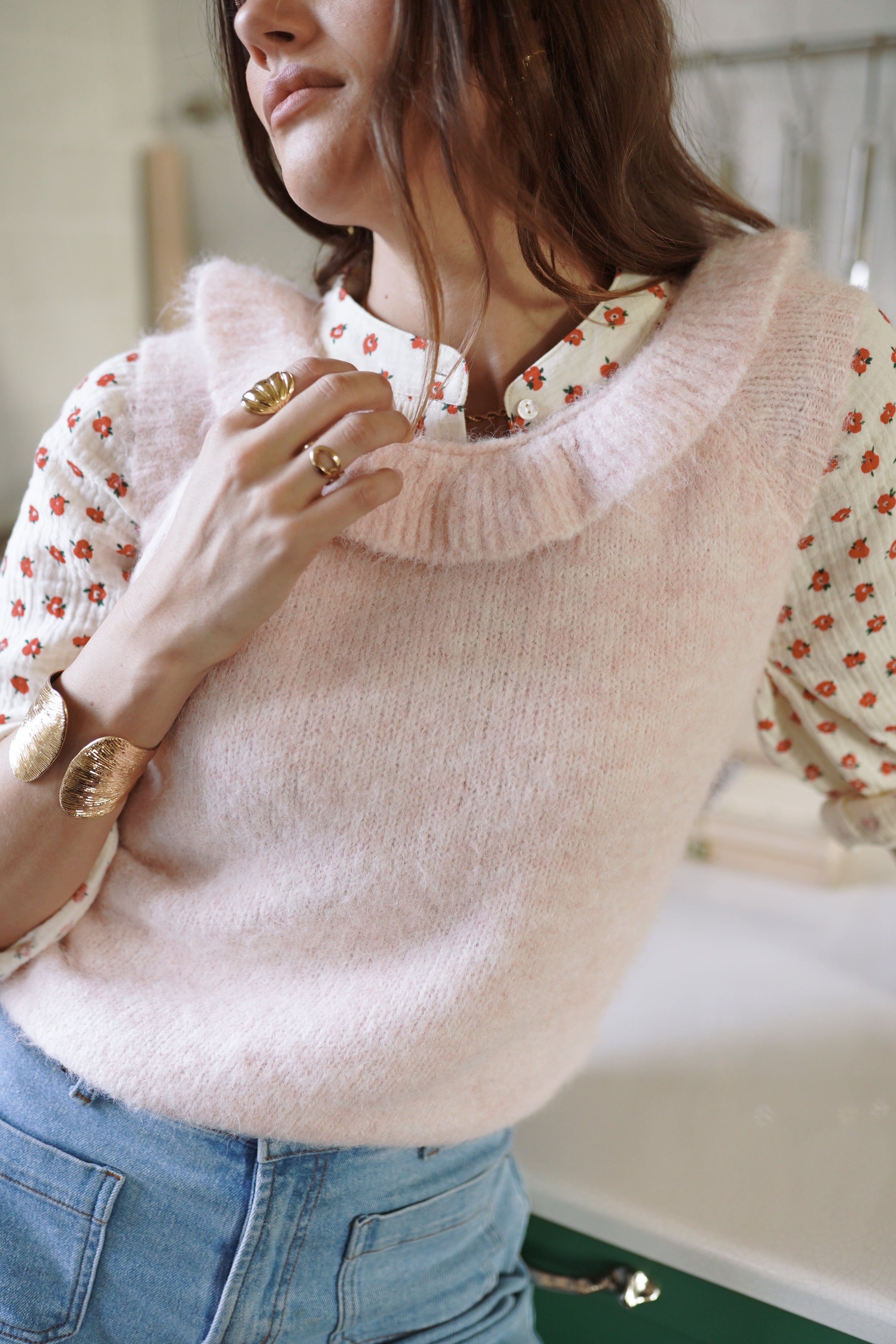 Roselia séduit par sa teinte rose poudré et sa maille au toucher duveteux. Une pièce douce et lumineuse, portée par une encolure arrondie et un volume souple, à adopter au fil des saisons. À associer à la chemise Marlène pour un look de mi-saison.