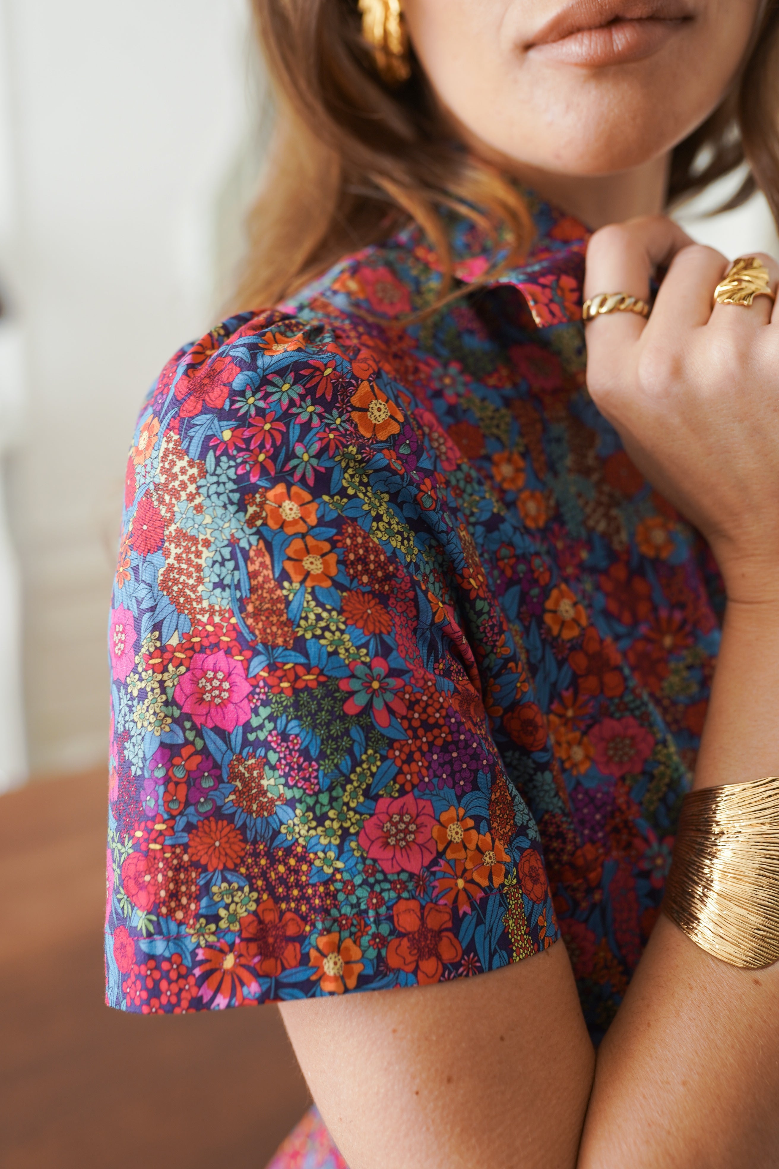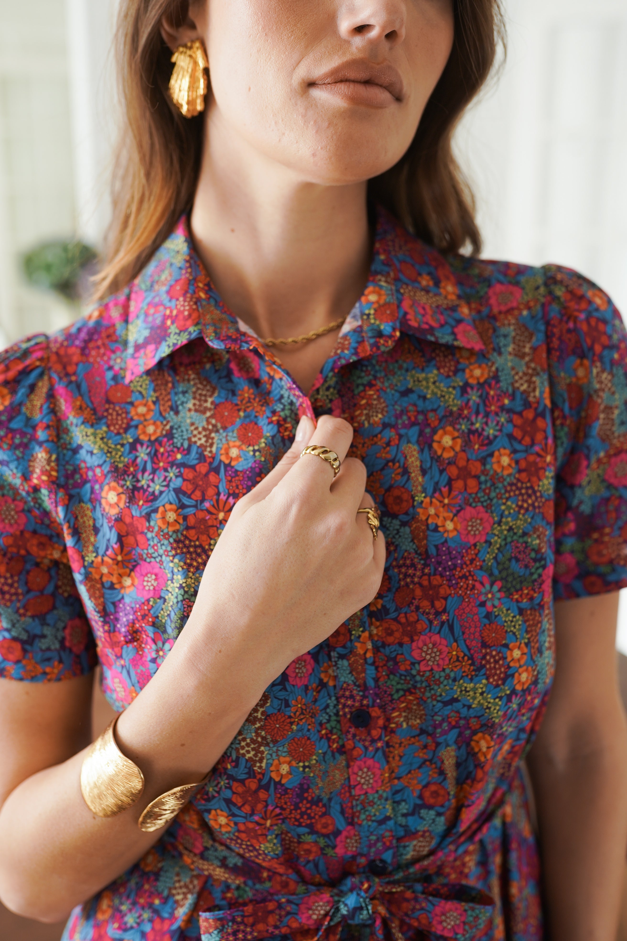 - Col chemise et manches courtes légères