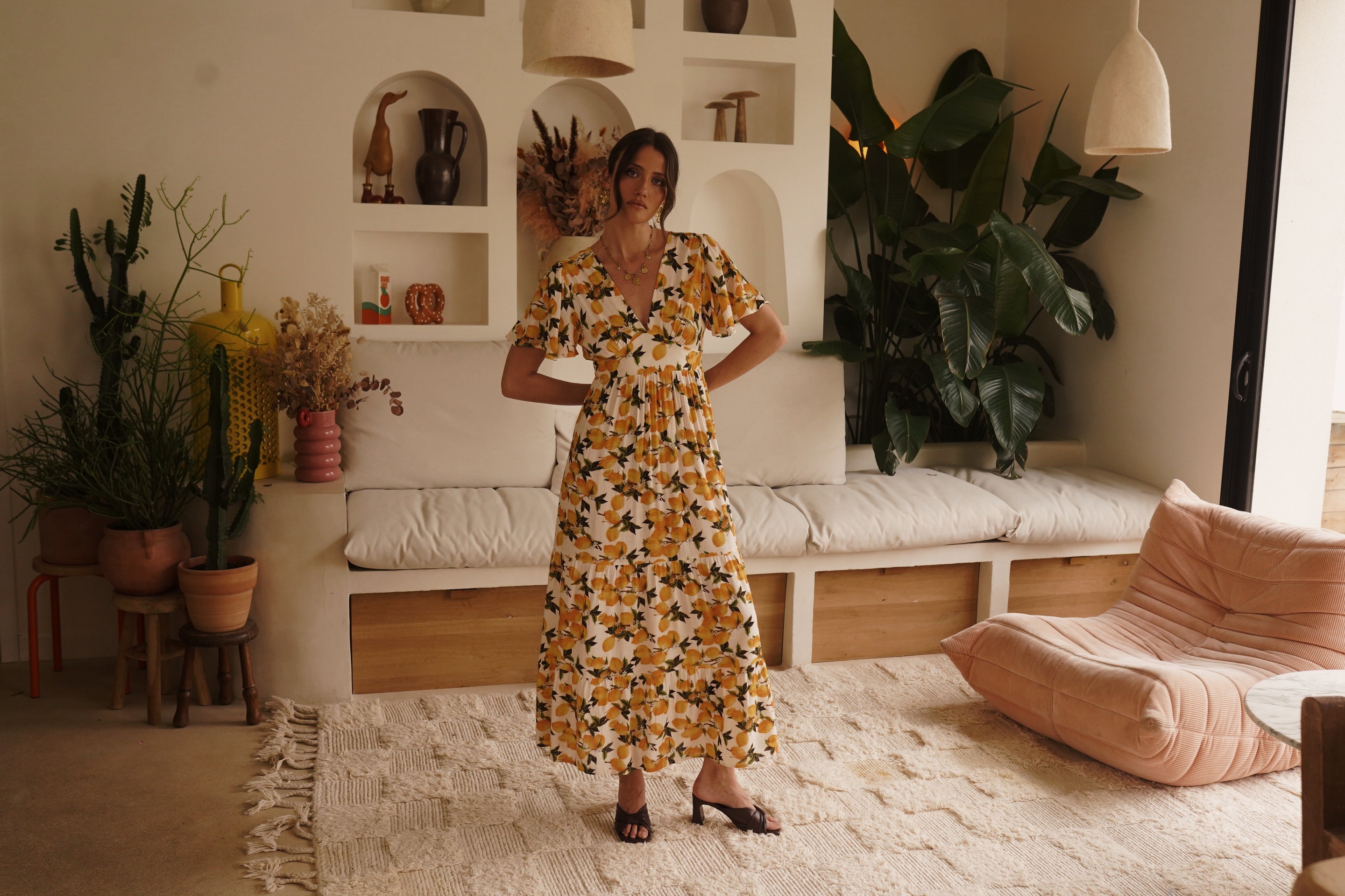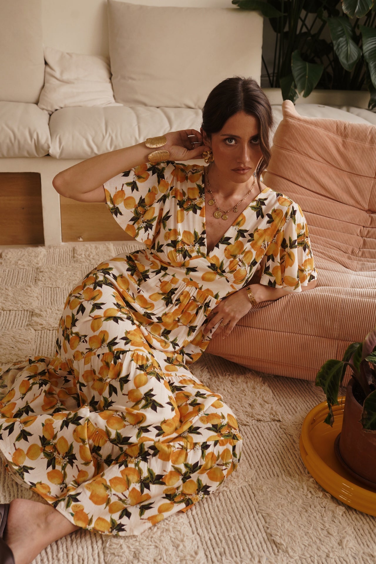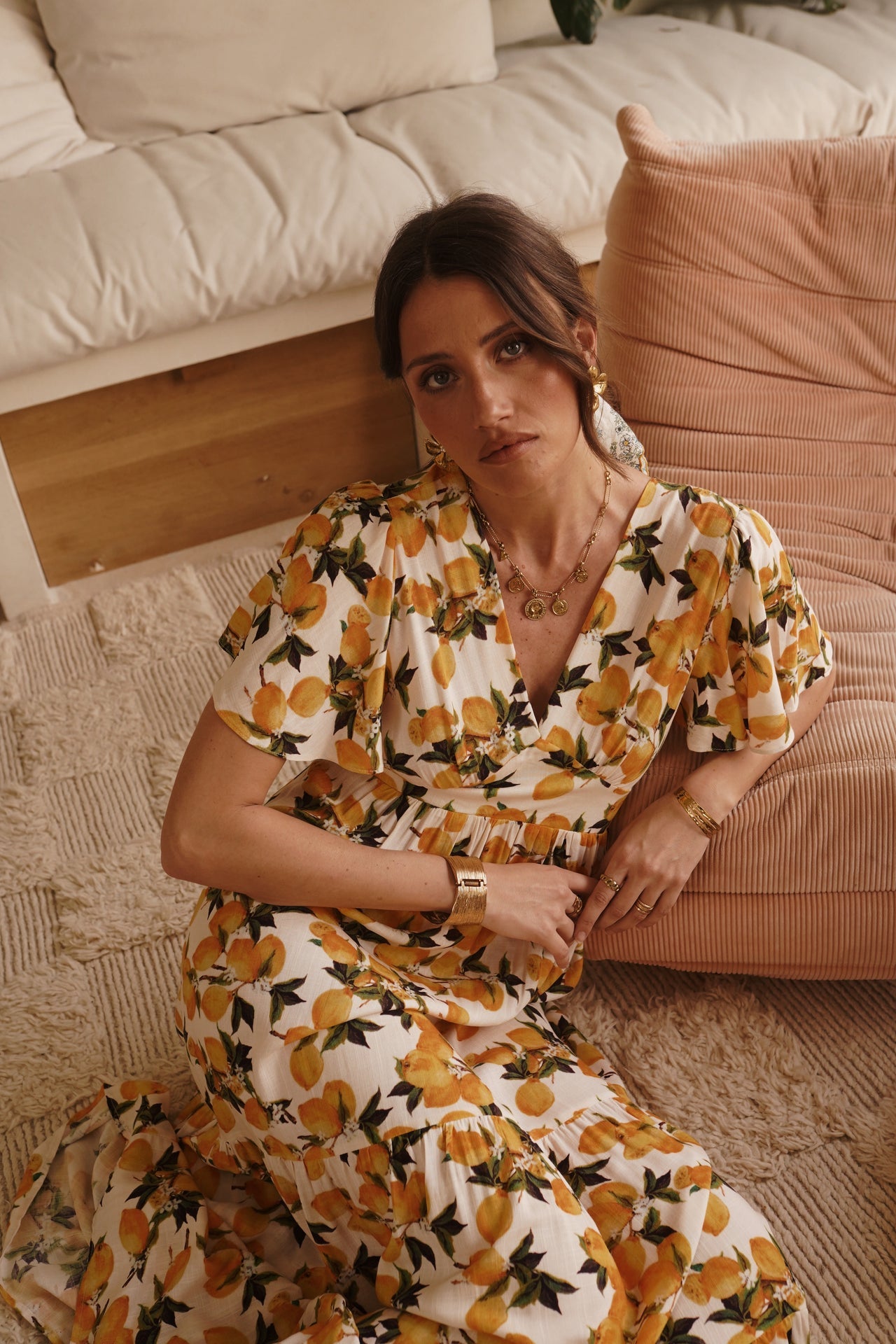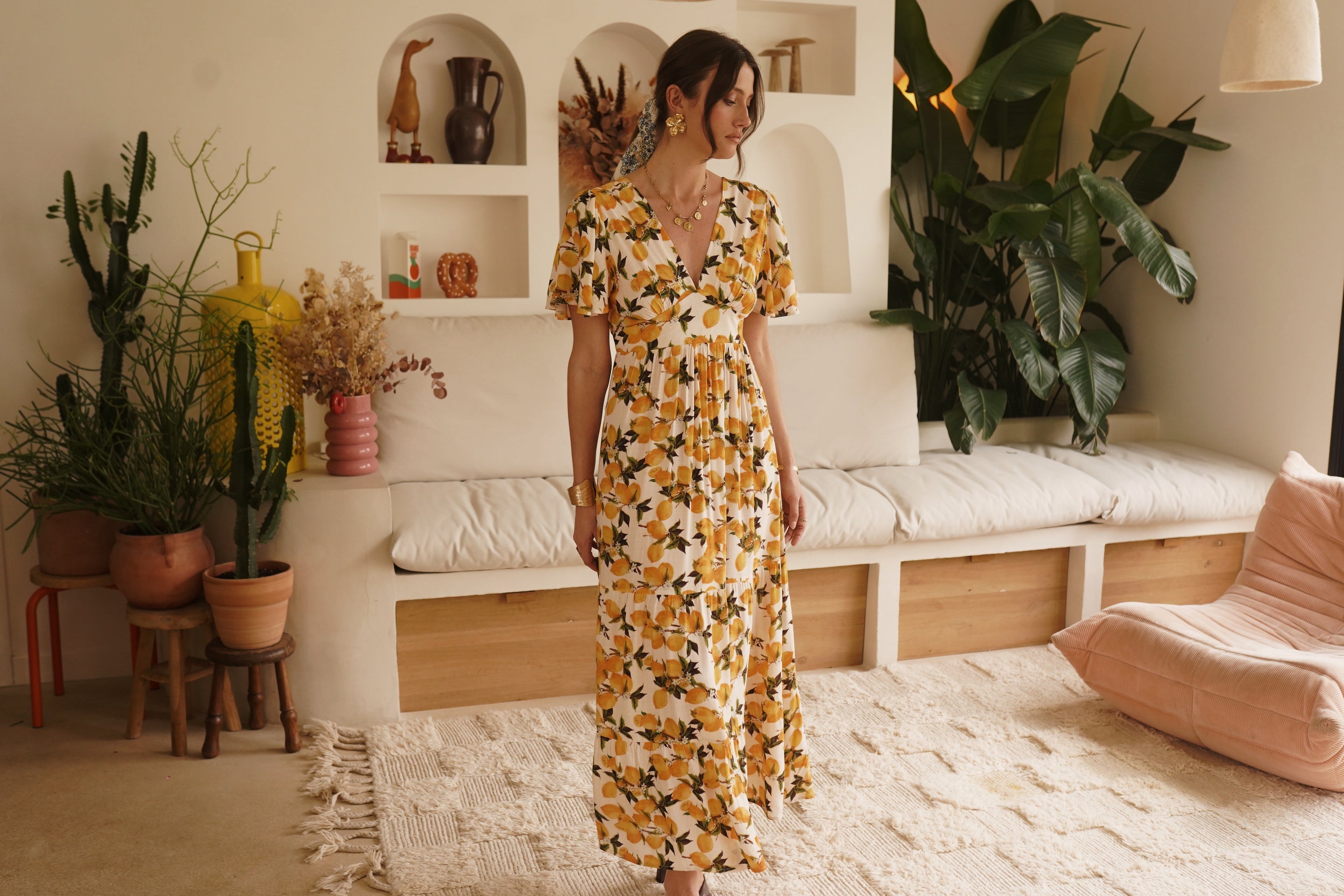- Imprimé citron vibrant sur fond ivoire, esprit solaire et estival