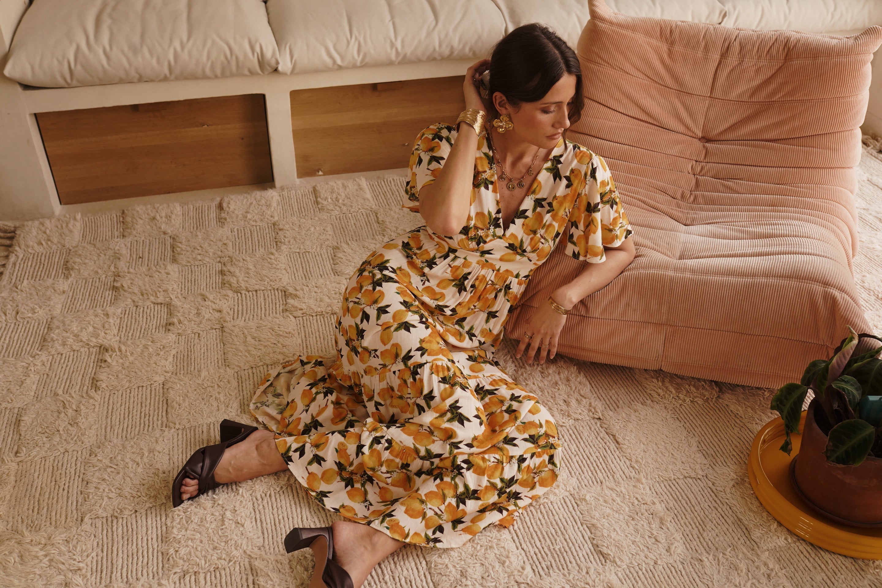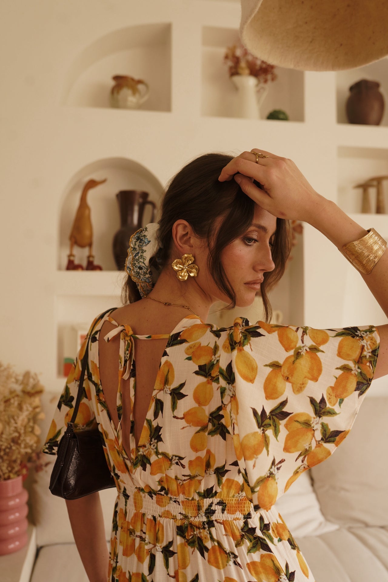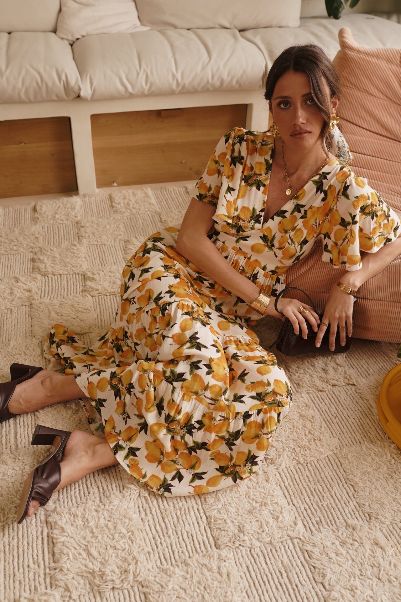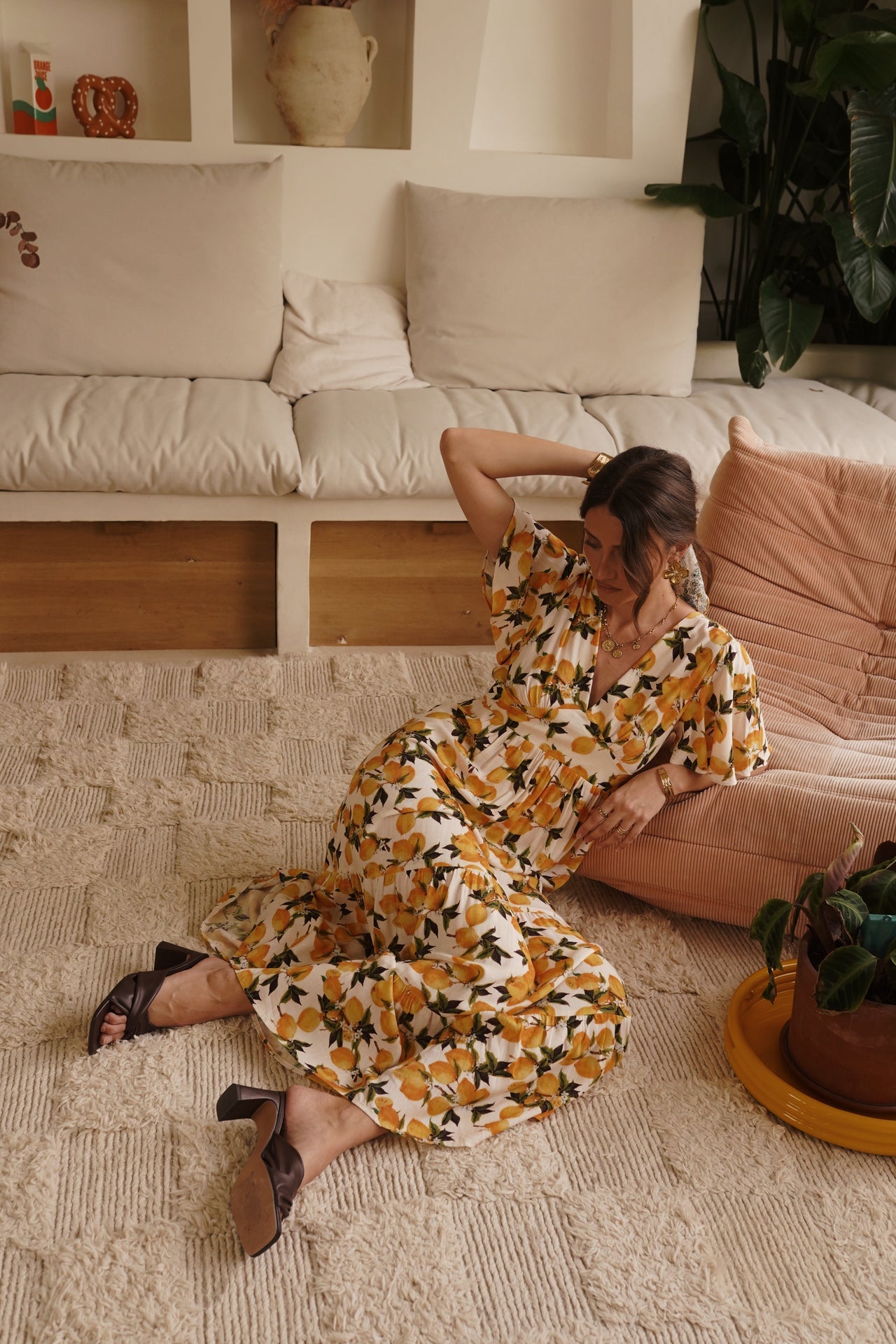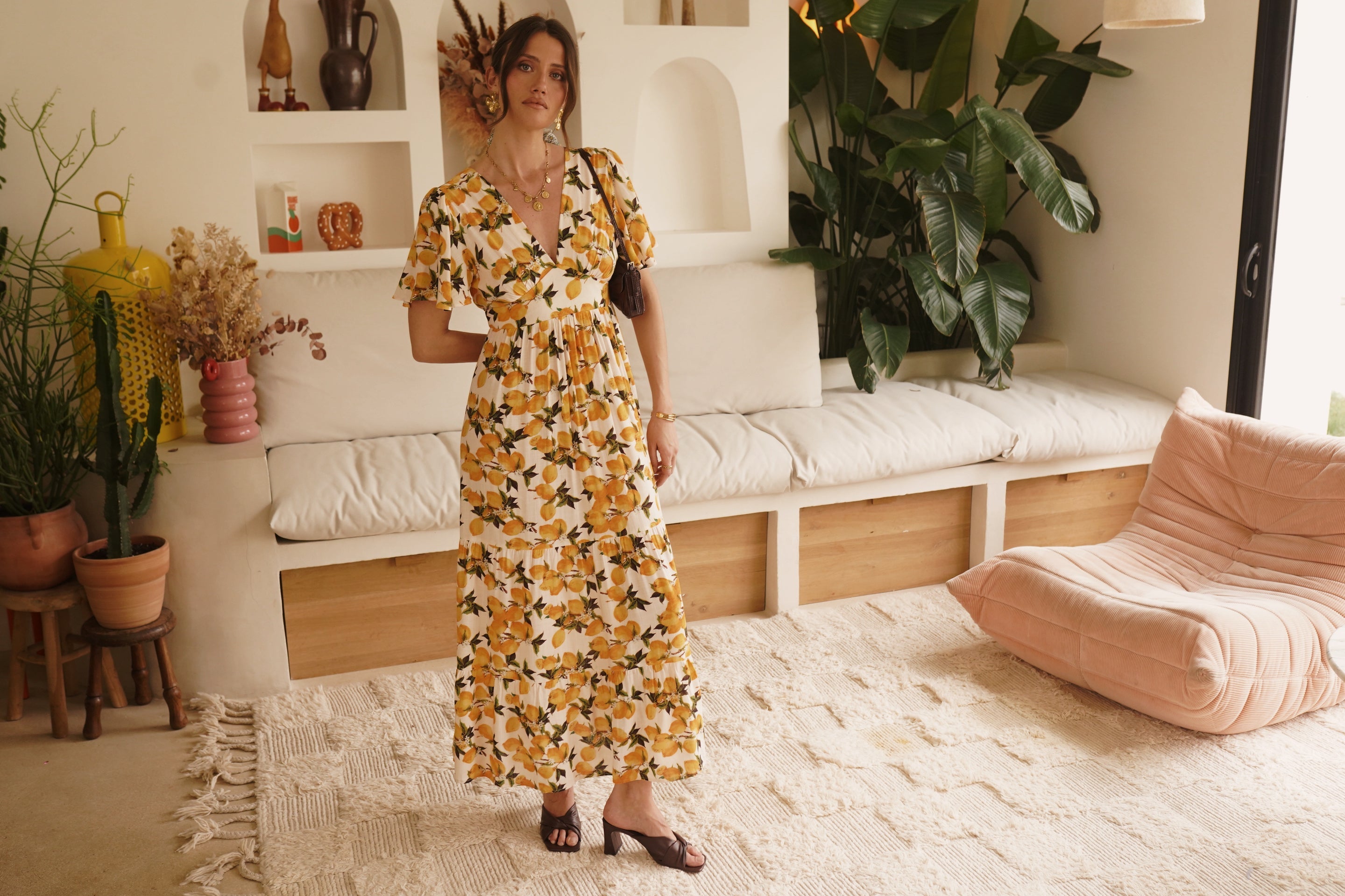 - Imprimé citron vibrant sur fond ivoire, esprit solaire et estival
